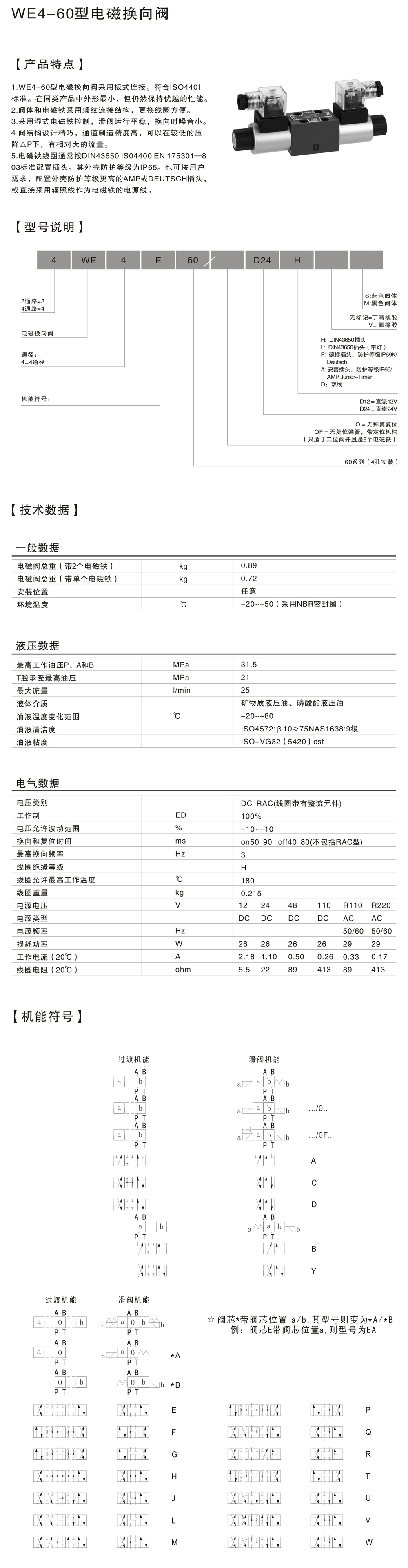 萬爾福4WE4型60系列電磁換向閥參數