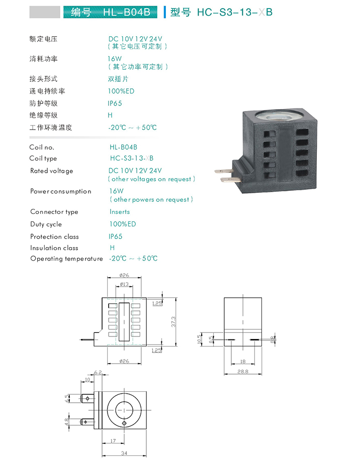 HC-S2-13-XB-插裝閥用線圈 當前位置: 網站首頁 > 產品中心 > 萬爾福線圈 > 插裝閥用線圈