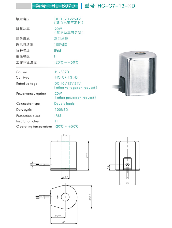 HC-C7-13-XD-插裝閥用線圈 當(dāng)前位置: 網(wǎng)站首頁 > 產(chǎn)品中心 > 萬爾福線圈 > 插裝閥用線圈