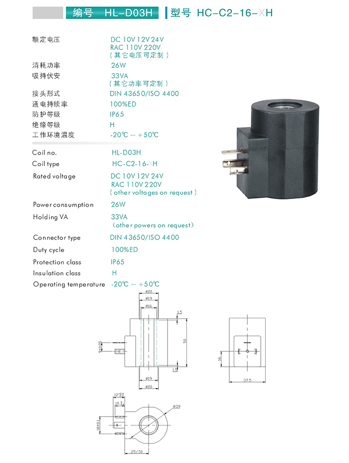 HC-C2-16-XH-插裝閥用線圈 當(dāng)前位置: 網(wǎng)站首頁 > 產(chǎn)品中心 > 萬爾福線圈 > 插裝閥用線圈
