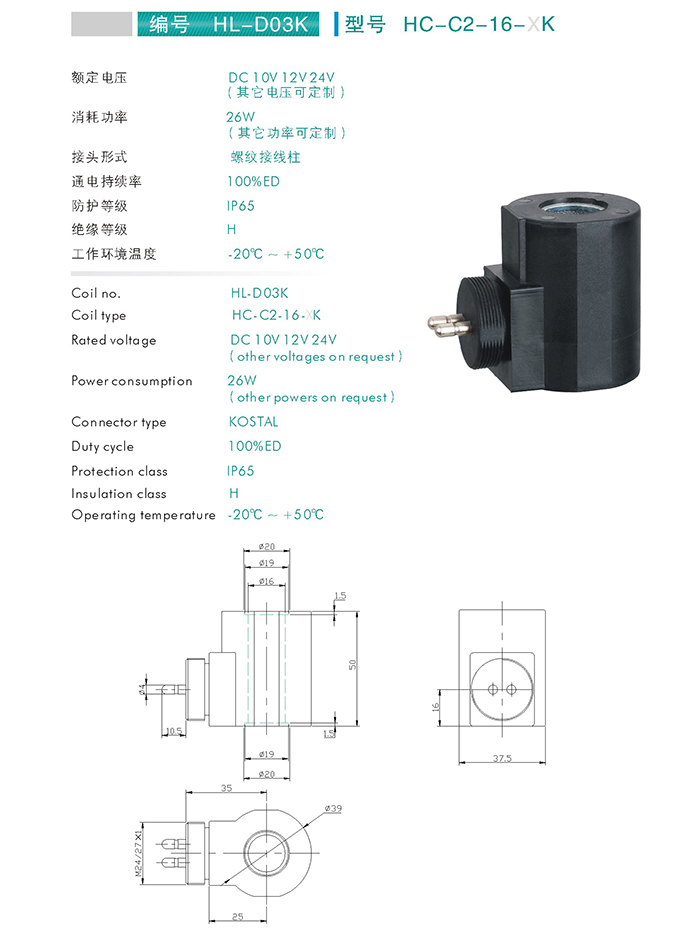 HC-C2-16-XK-插裝閥用線圈 當前位置: 網站首頁 > 產品中心 > 萬爾福線圈 > 插裝閥用線圈