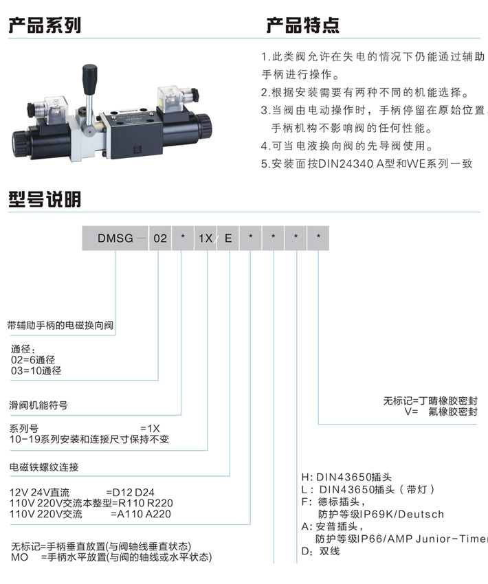 DMSG型帶輔助手柄的電磁換向閥